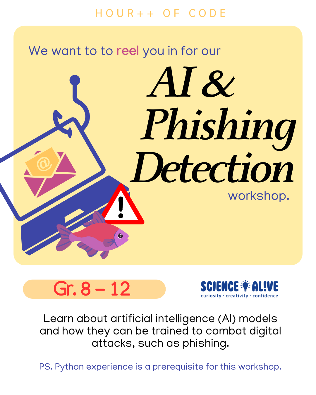 The AI & Phishing Detection workshop is open to Grade 8-12 students who are interested in artificial intelligence (AI) models and how they can be trained to combat digital attacks, such as phishing.