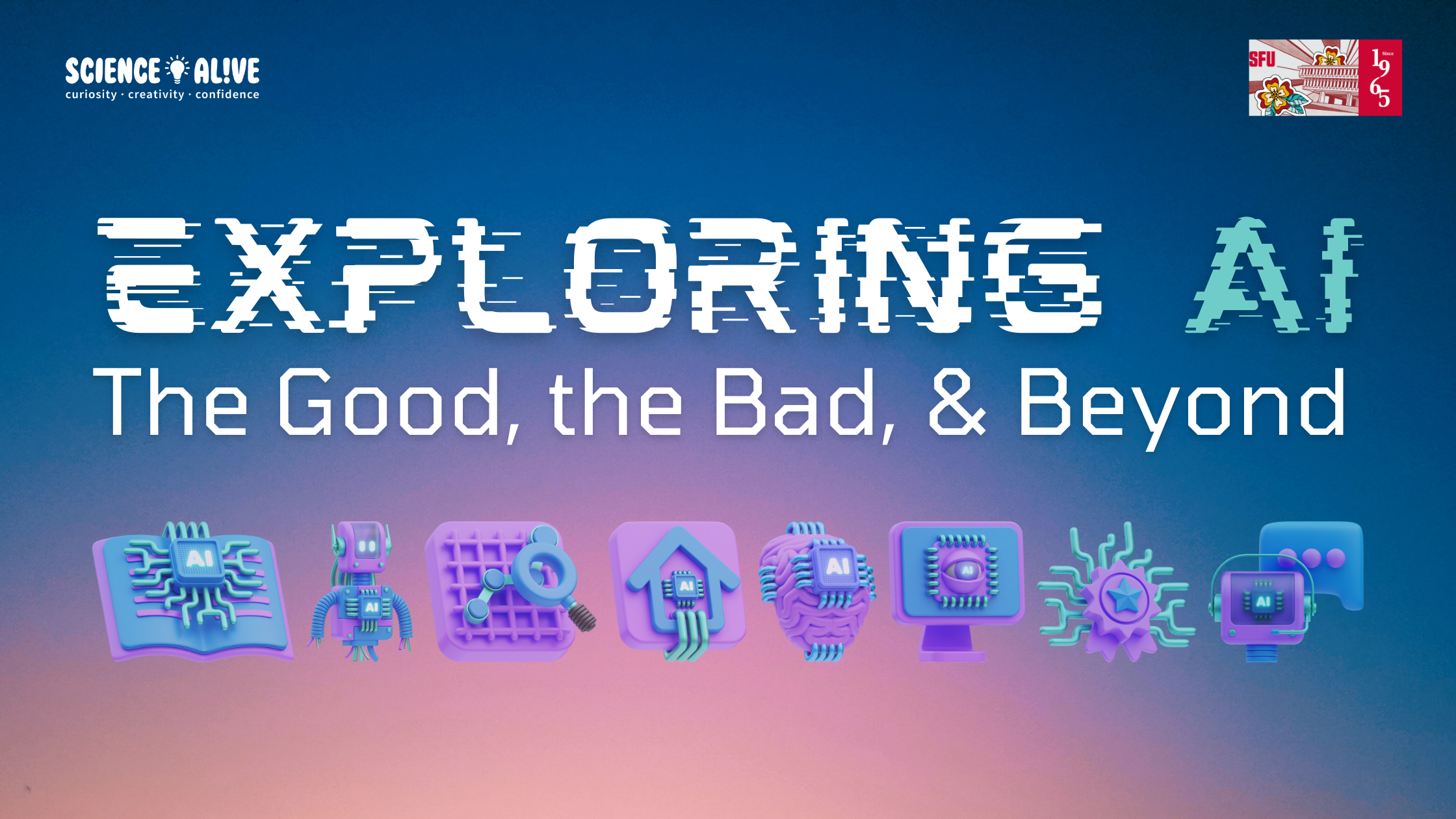 Exploring AI: the Good, the Bad, & Beyond is a series of seven online workshops that run from 10-11:30 am every Saturday between Sept 20 - November 8, 2025 (except for the Thanksgiving weekend, October 11). In this workshop series, Grade 8-12 students will explore artificial intelligence (AI), while learning more about generative AI, ethics of AI, and real-world uses of AI in STEM fields.