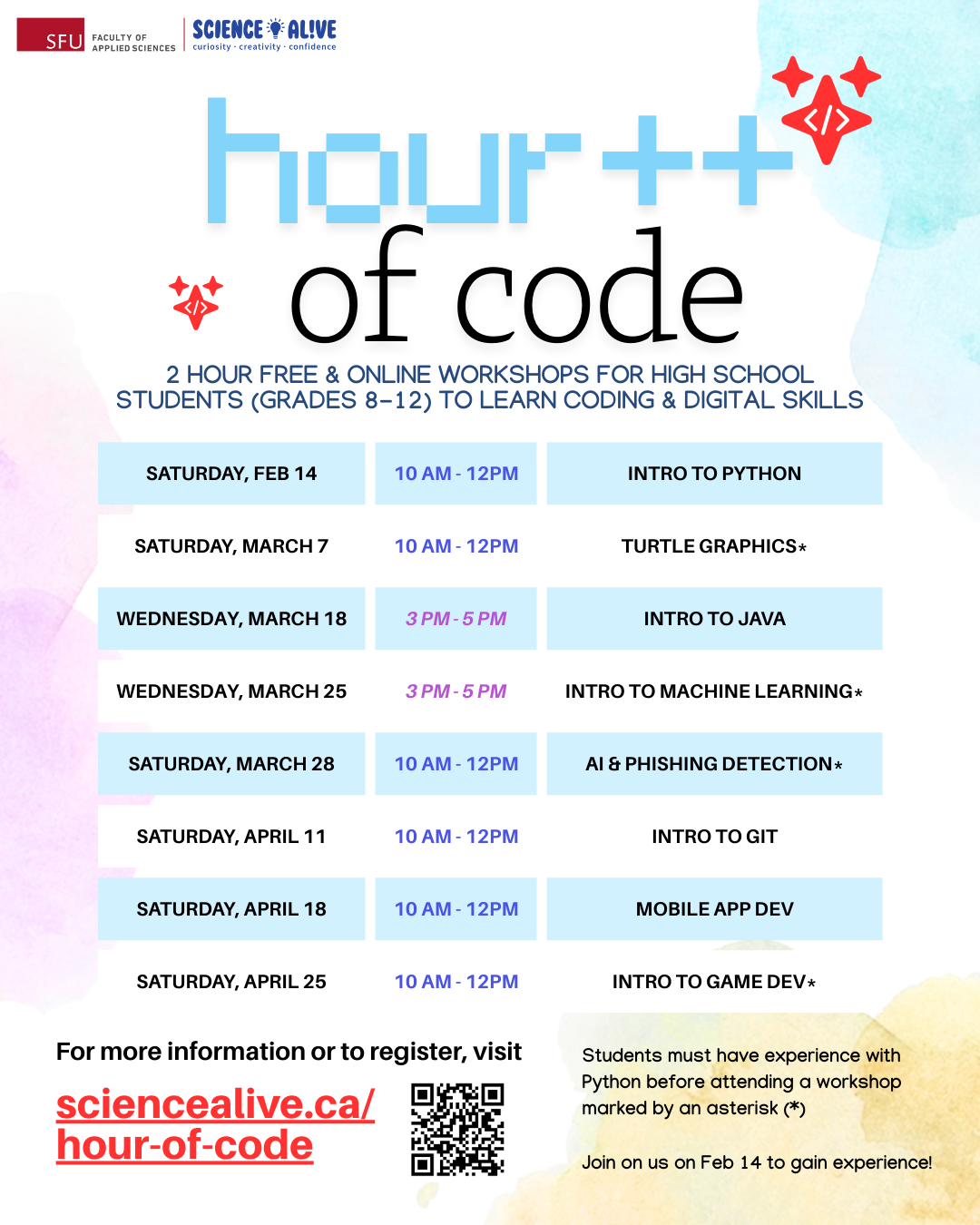 Hour Plus Plus of Code features various one-off workshops for high school-age students (grades 8-12) to learn how to code and implement popular digital tools.